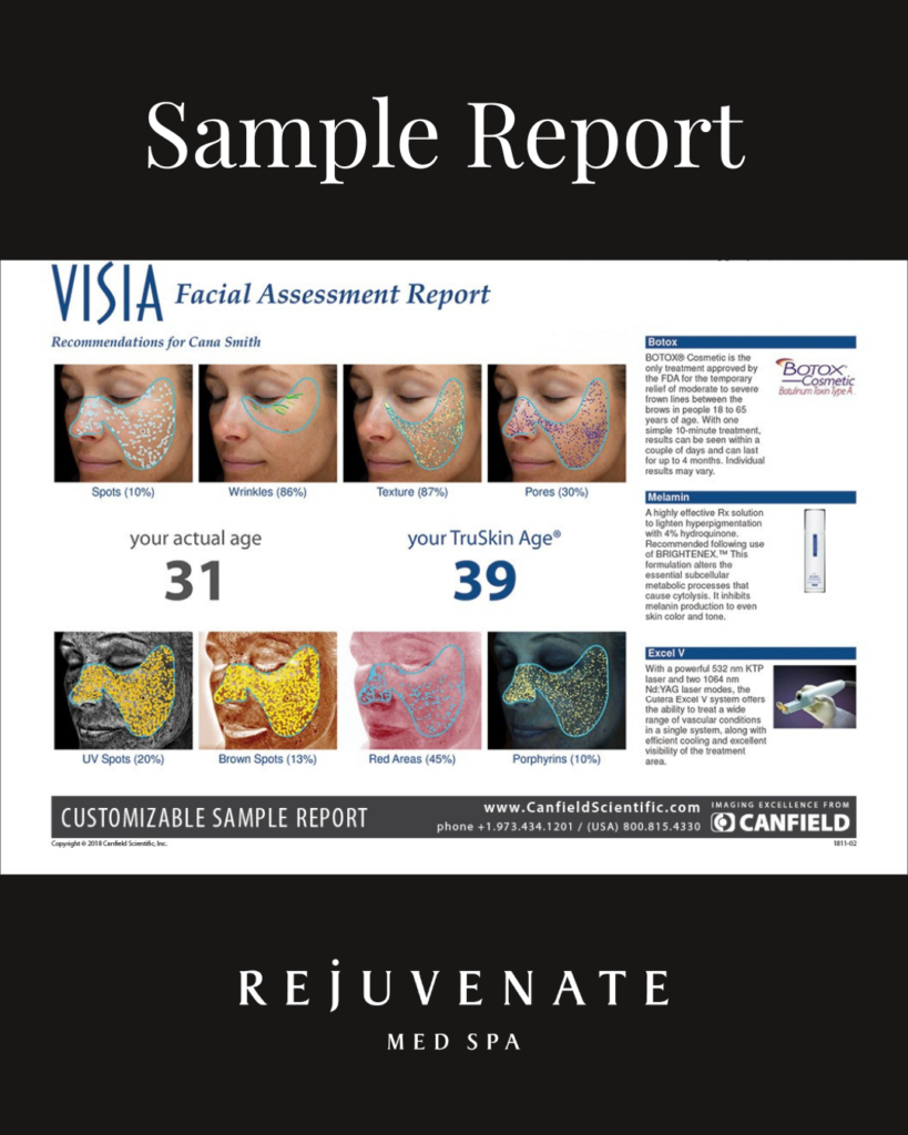 At Rejuvenate Med Spa, VISIA Skin Analysis is interpreted by Registered Nurses with medical training in skin health, healing response, and treatment planning. This clinical expertise allows for a deeper understanding of how your skin will respond to different treatments and why certain concerns develop.
